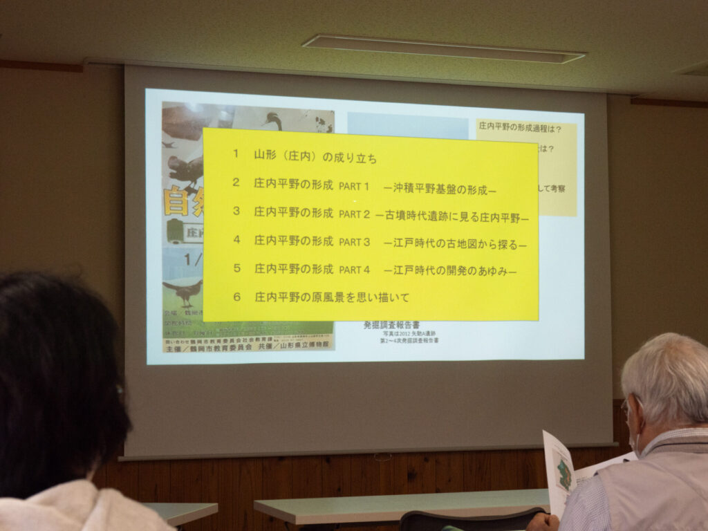 2025年10月1日、鶴岡市自然学習交流館ほとりあで大山文化財を愛する会の定例講座が開催され、30名の参加者がともに学びました。富樫均先生から庄内平野の成り立ちについて判りやすくお話いただき、特に山形庄内の成り立ちと高館山の地質には興味深いものがありました。