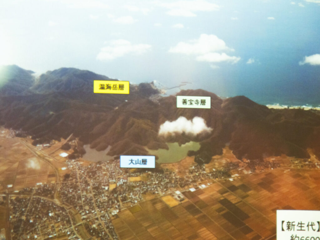 山形の地質は主に7つに区分され、特に中新世の地層が多いことが特徴です。これらは日本列島がアジア大陸から離れる時期の地層で、当時の山形県は海底で活発な火山活動が起こっていたそうです。高館山周辺には温海岳層、善宝寺層、大山層が堆積しており、約2300万年前から激しい火山活動を伴いながら形成されました。植物化石や貝化石も産出され、海が初め浅海だったものが後期には急激に深海へ変わっていった様子が読み取れるとのことでした。